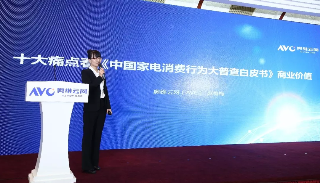 奥维云网(AVC)家电事业部副总经理赵梅梅通过当下家电消费“十大痛点”介绍了《中国家电消费行为大普查白皮书(2018)》的价值和看点。《中国家电消费行为大普查白皮书(2018)》对家电行业发展的“十大痛点”进行了全面的调研和精准的分析,对处于行业寒冬的家电企业来说,是一次难得了解消费者购买需求的市场营销工具。